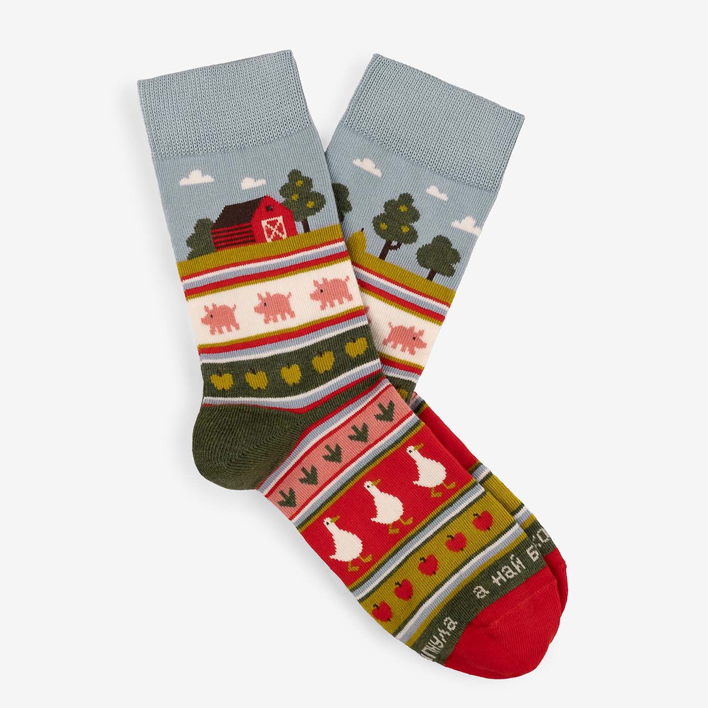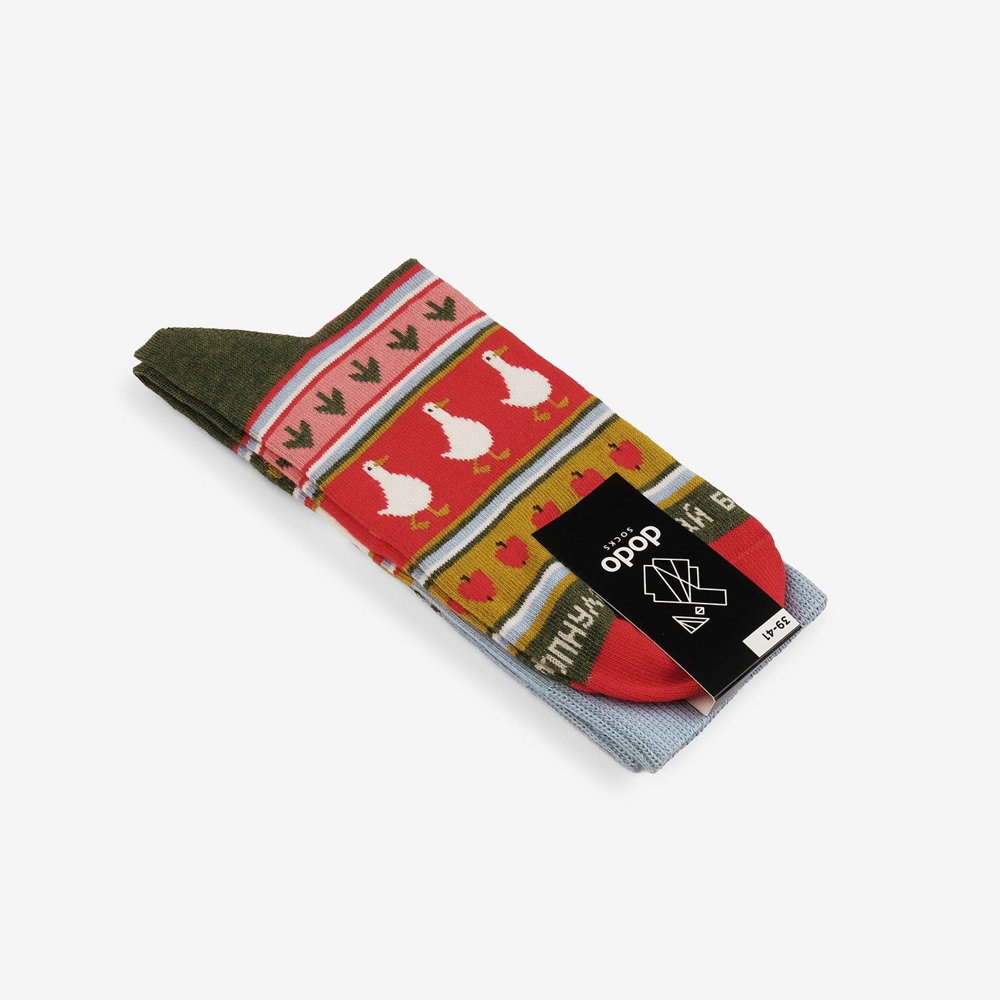 A pair of socks made from high-quality cotton with a colorful design and unique Ukrainian flair. Sometimes life throws you less-than-perfect days or situations. А най би тебе качка копнула (literally: I hope you get kicked by a duck!)! You say it, and suddenly feel much better!