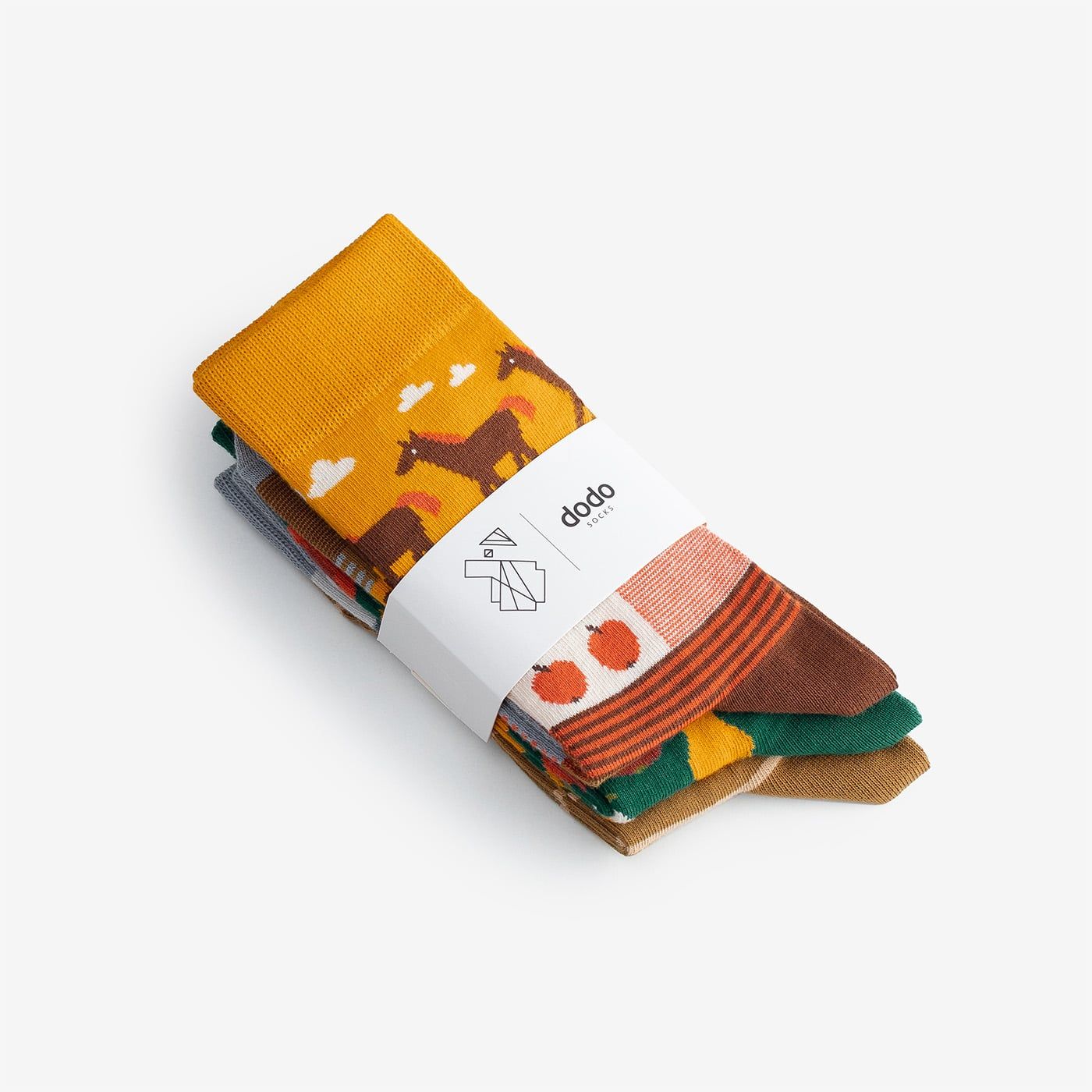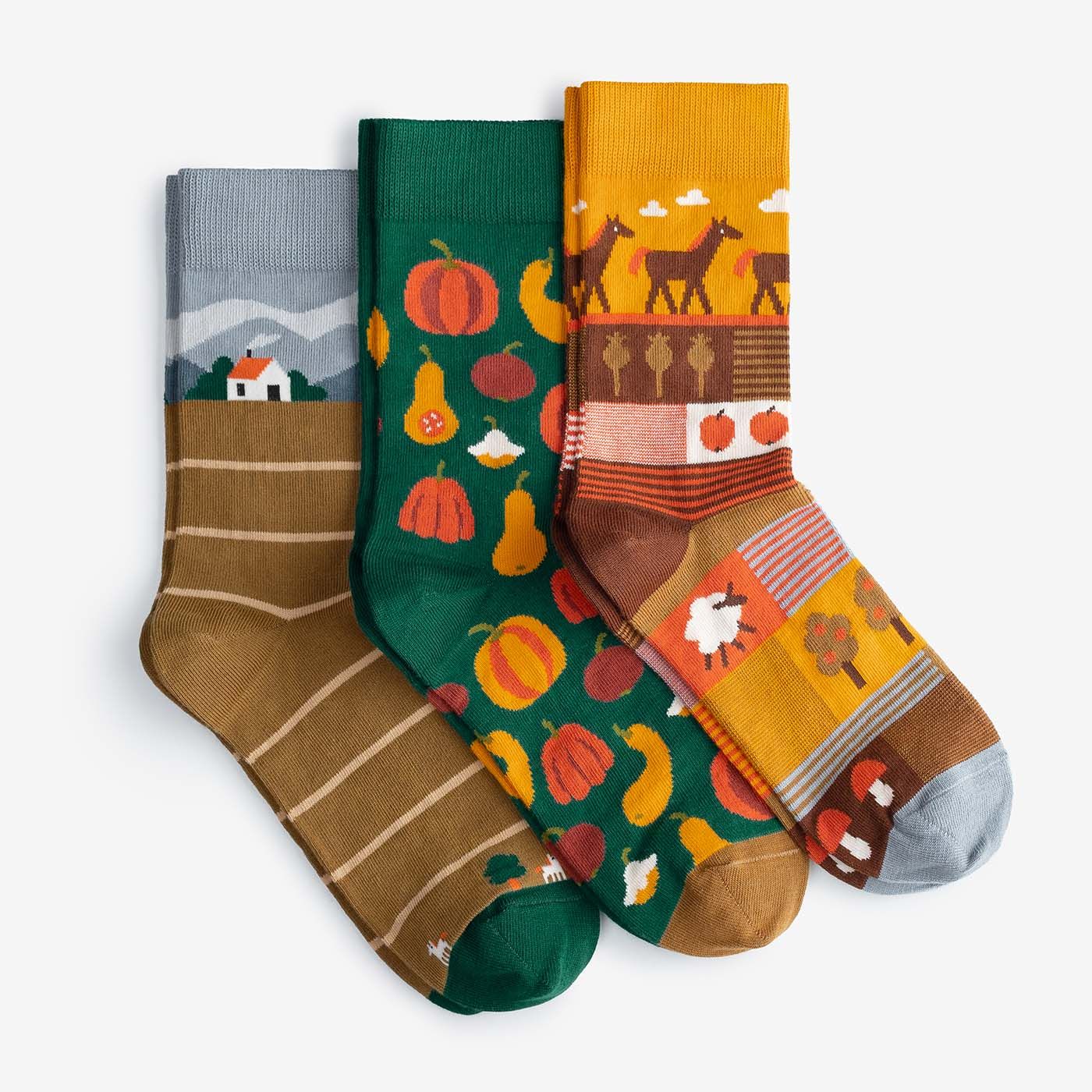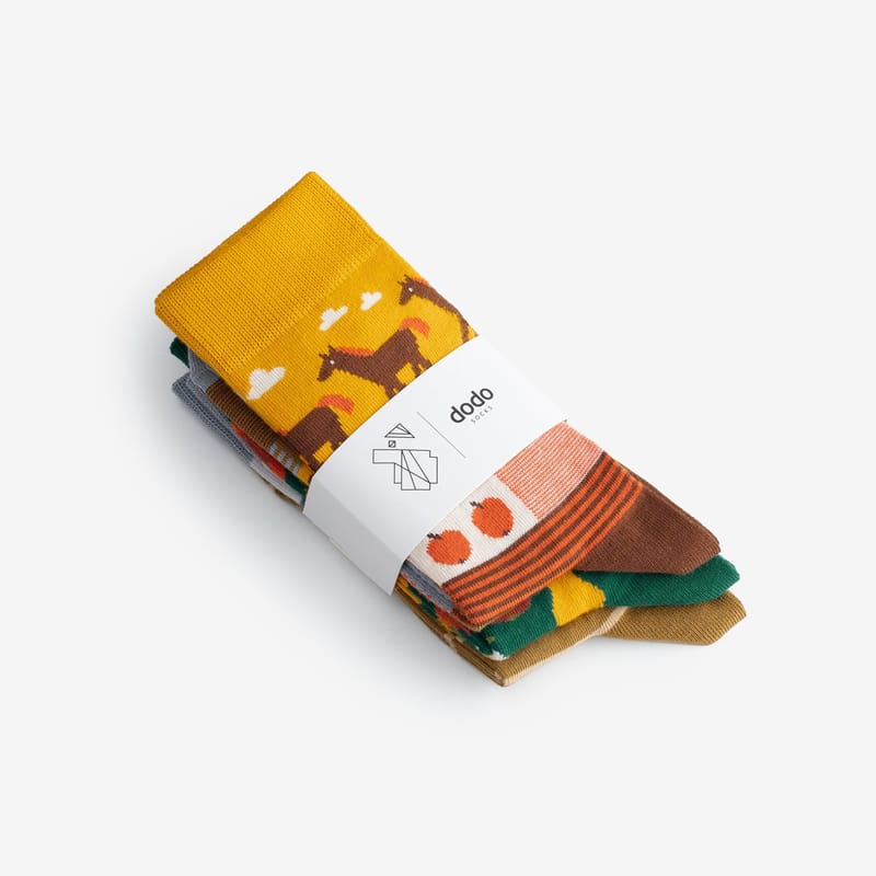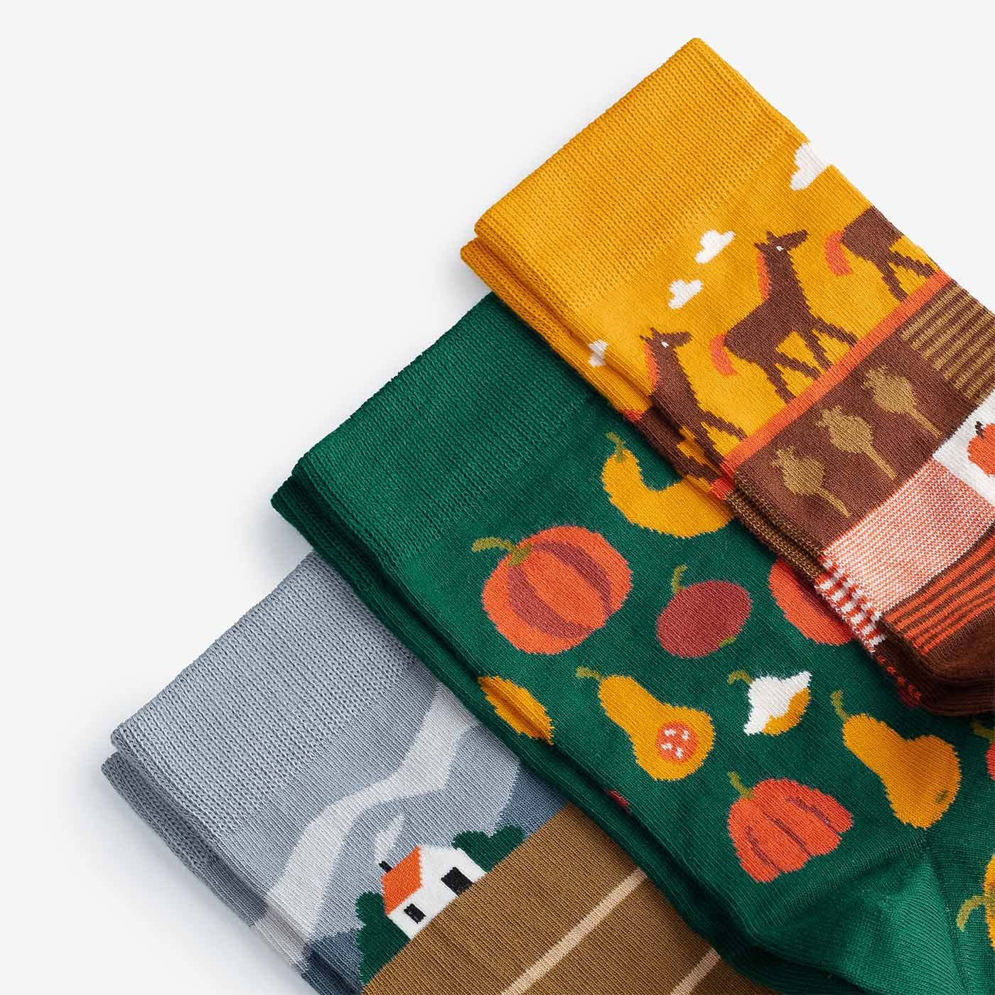 The “Harvest” set — three pairs of socks as a thank-you to the season.