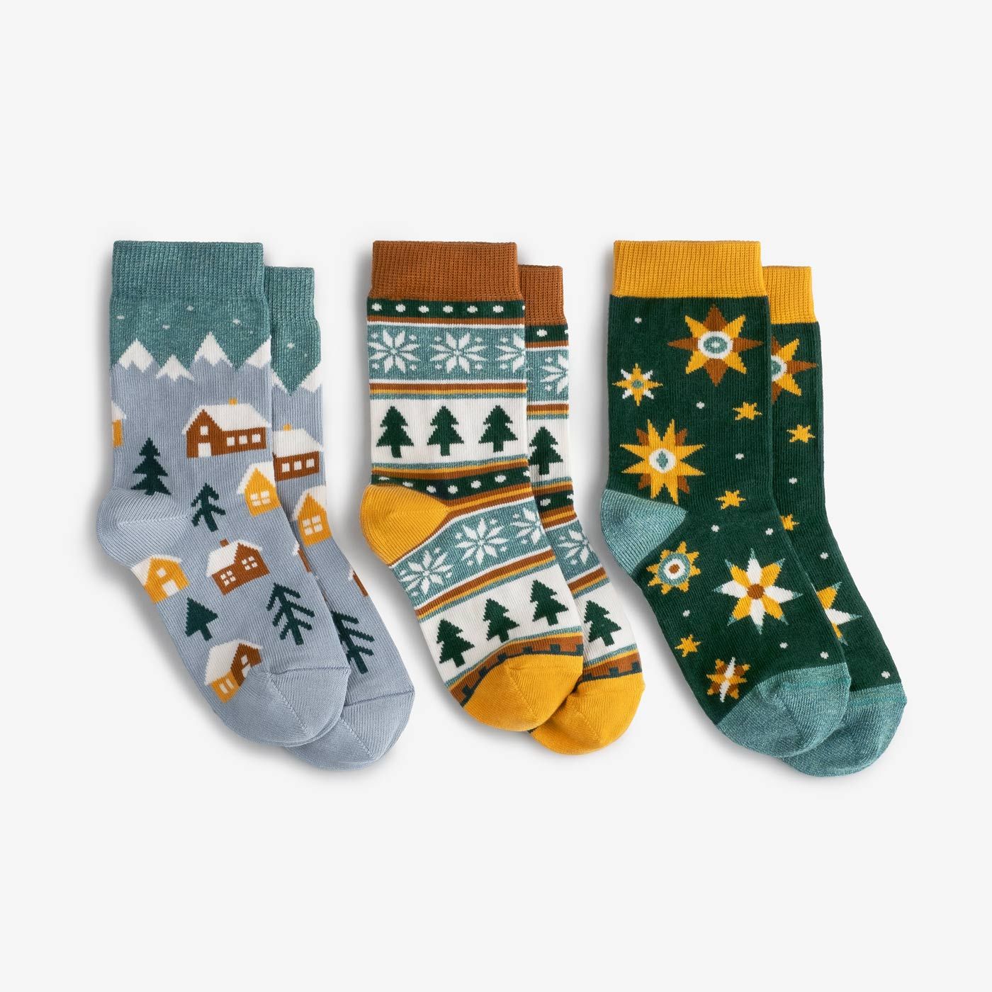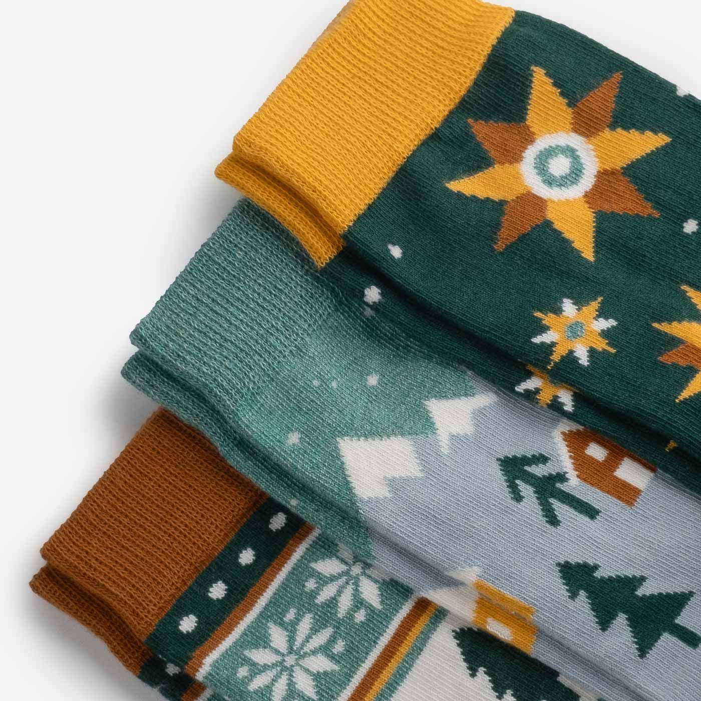 A set of cozy, high-quality cotton socks for kids with a festive design.