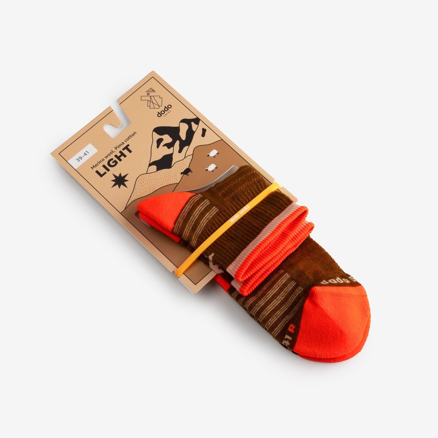 Merino Light trekking socks by Dodo Socks are your reliable support in conditions where comfort isn’t just pleasant — it’s essential. Every detail is thoughtfully designed: quick-drying fibers wick away moisture, the anatomical fit reduces the risk of chafing, and the terry heel cushion adds shock absorption for extended wear. Elastic cuffs keep the sock in place without unnecessary pressure.