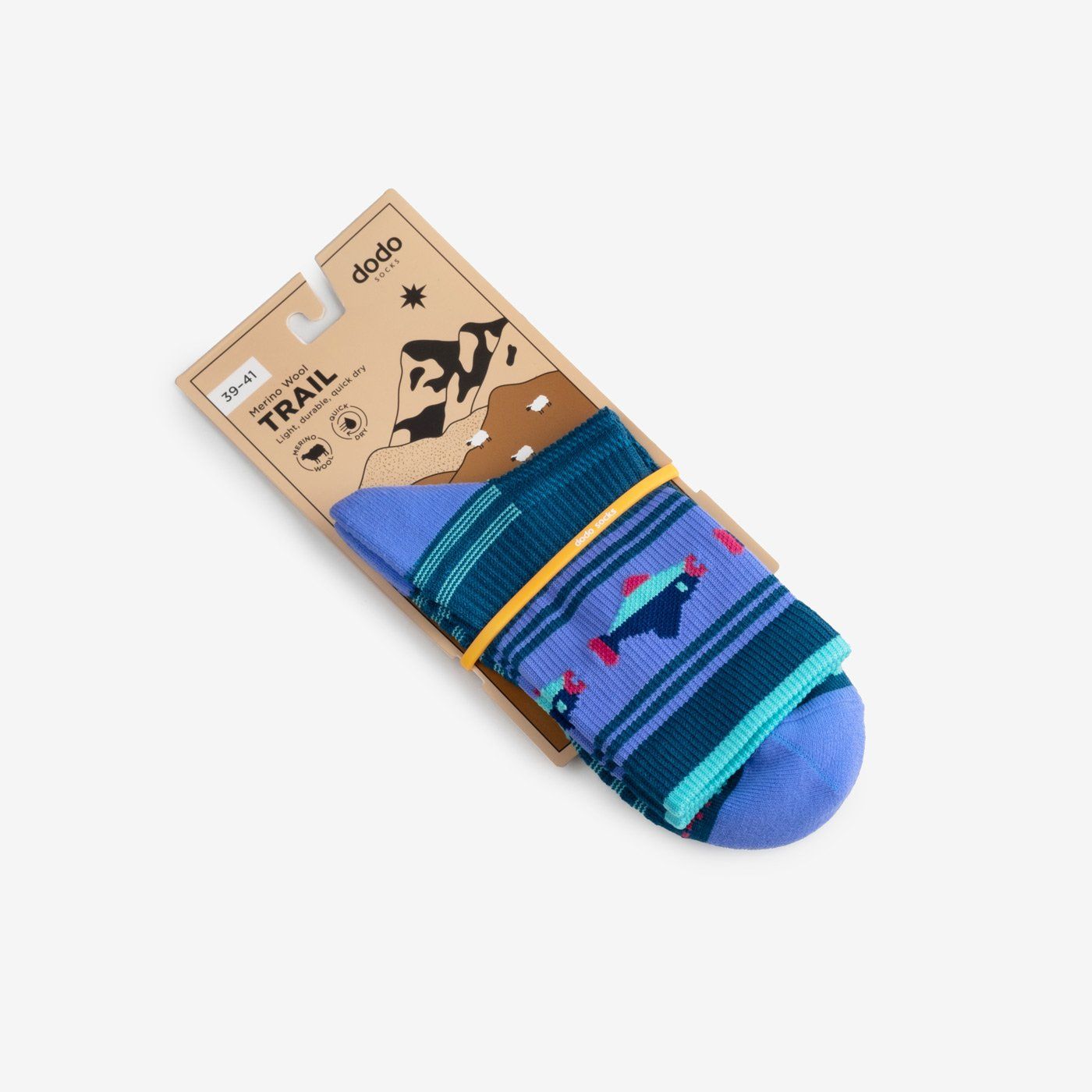 Merino Trail trekking socks by Dodo Socks offer support where comfort truly matters. Designed for long walks and hikes in warm seasons and transitional weather, every detail is carefully considered: quick-drying fibers wick away moisture, ventilation zones ensure airflow, and the anatomical fit reduces the risk of chafing. The terry zone adds softness, while elastic cuffs keep the sock in place without unnecessary pressure.