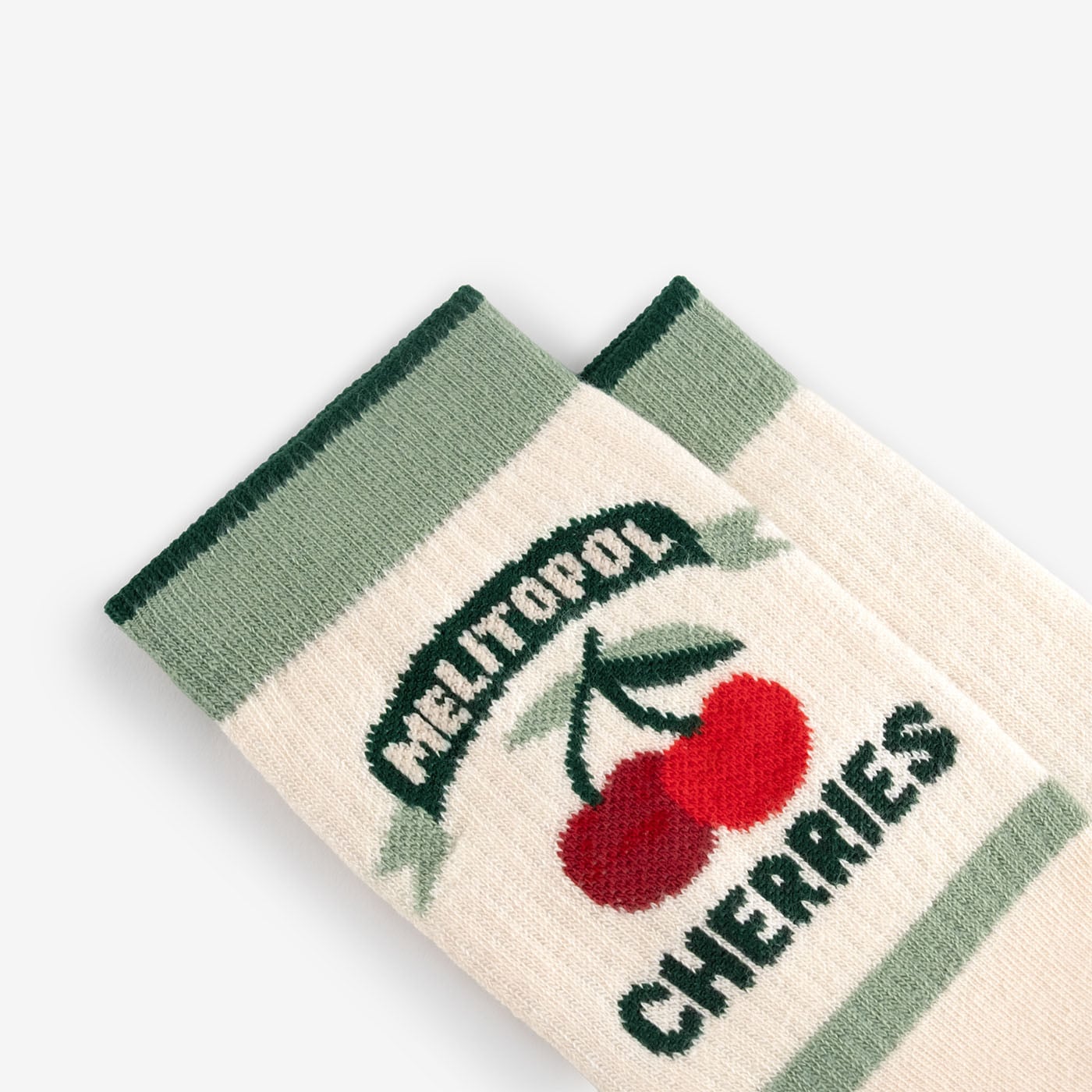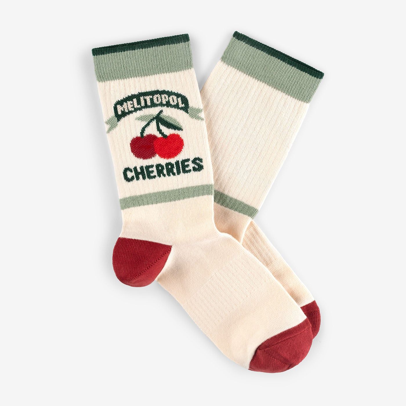 Солодкі, як перше кохання, і небезпечні для білих сорочок мелітопольські черешні. Ці шкарпетки пробуджують спогади про те, як солодкий сік липне до пальців і від сміху червоніють вуха.