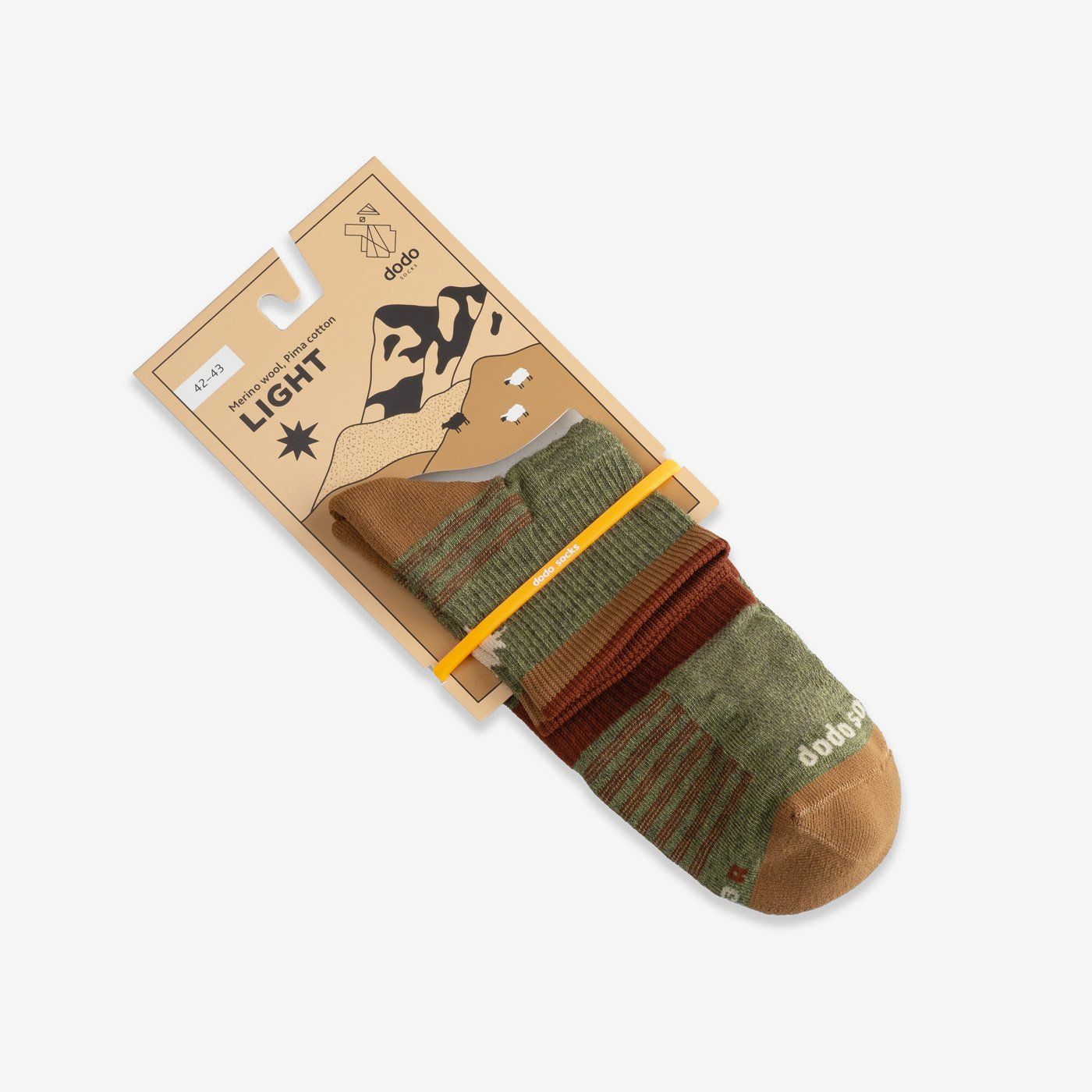Пара для тих днів, коли хочеться йти довго, слухати ліс і не думати про ноги, а тільки про маршрут. Трекінгові шкарпетки Merino Light від Dodo Socks — це твоя підтримка в умовах, де комфорт не просто приємний, а критично важливий. Ми продумали кожен елемент: швидковисихаючі волокна відводять вологу, анатомічна форма знижує ризик натирань, а махрова подушка додає амортизації при тривалому навантаженні. Еластичні манжети тримають шкарпетку на місці без зайвого тиску.
