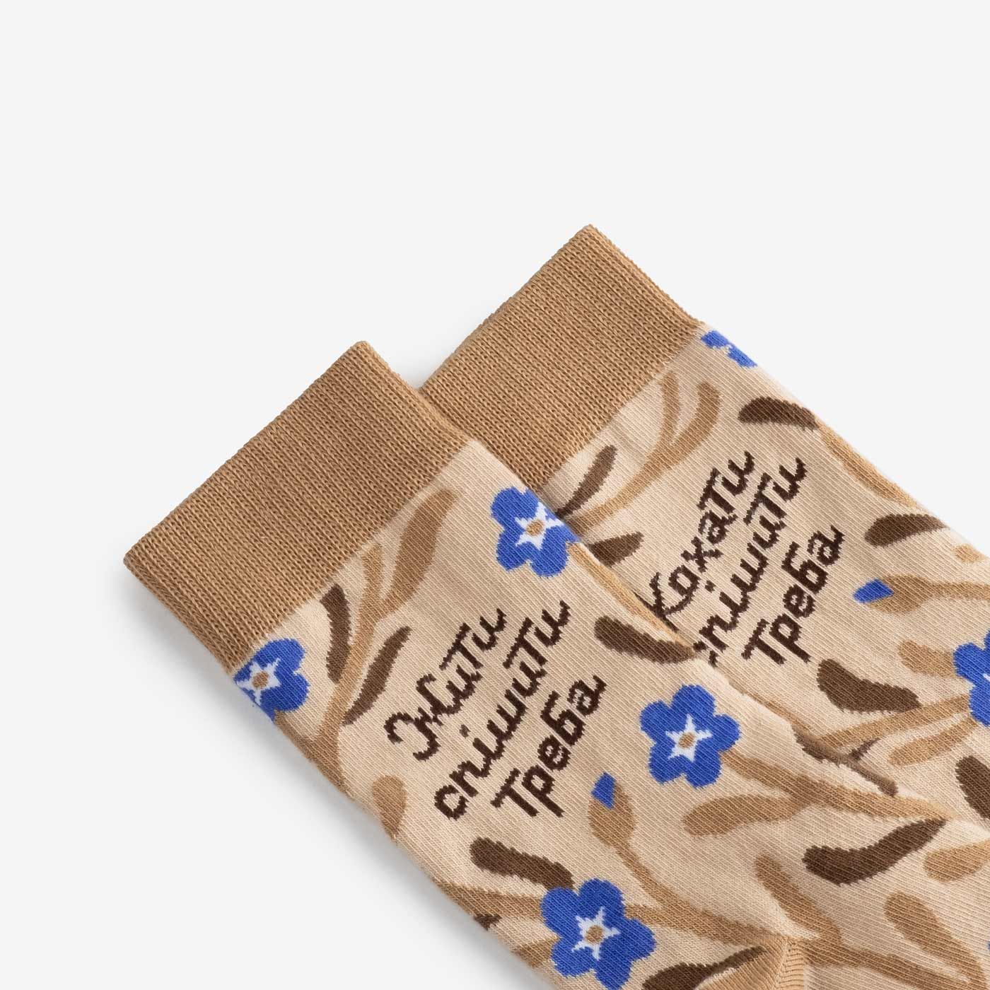 Пара шкарпеток з мʼякої бавовни, прикрашена безсмертними рядками поезії Василя Симоненка. Створена з нагоди 90-ї річниці від дня народження поета.
