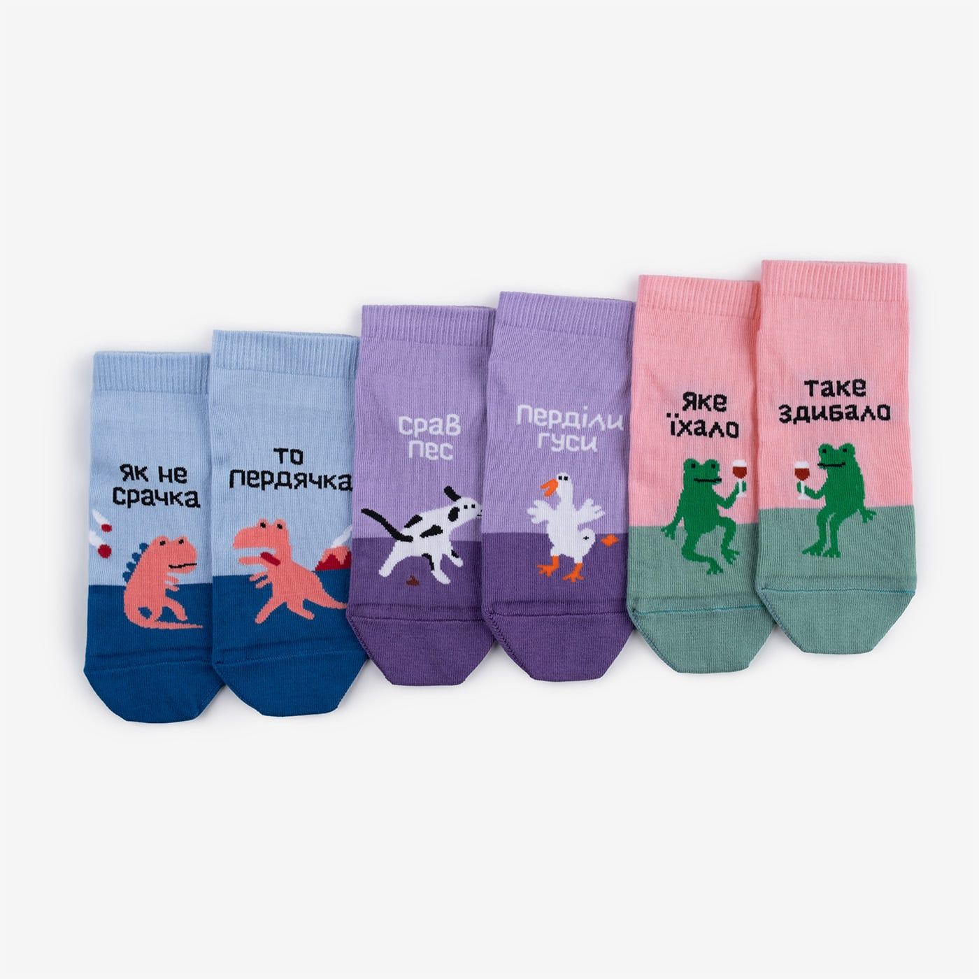 На такі випадки маємо набір коротких шкарпеток із народним настроєм для будь-якої життєвої ситуації.